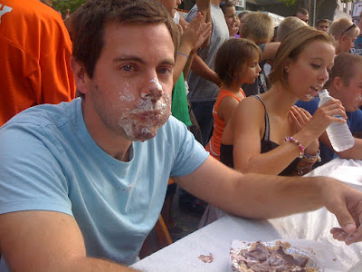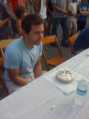 Apart from the fact that the contest was free and meant eating pie, I needed to see for myself whether I had the swift eating skills necessary for such contests. As you may remember, I entered the meatball eating contest at the Dean Martin Festival in Steubenville. But it was intensely hot that day and my dry throat found great difficulty getting those meatballs down.