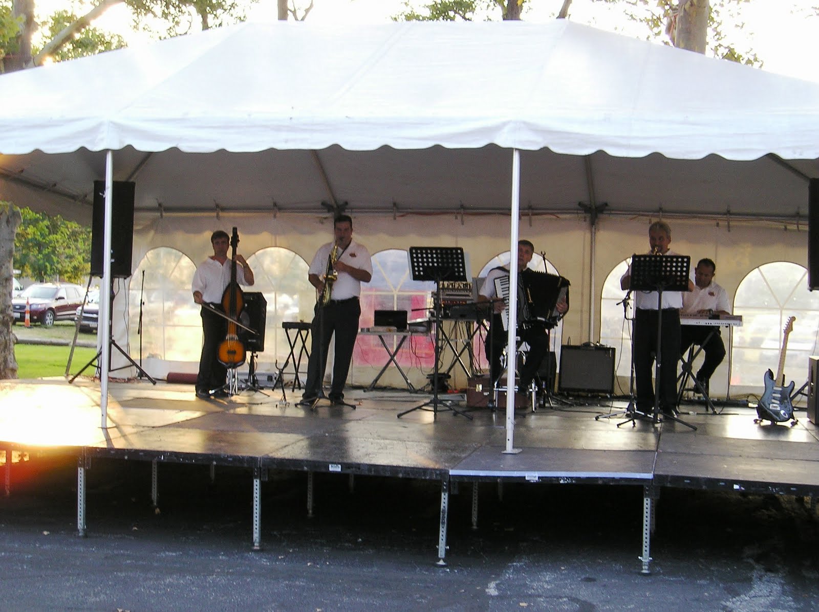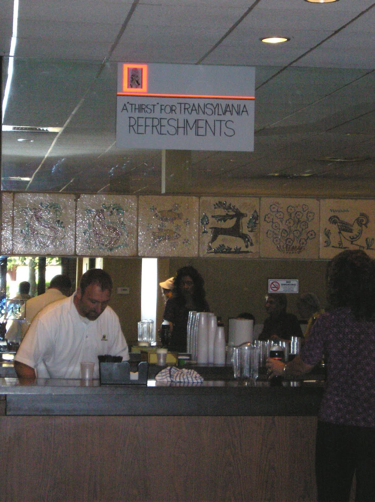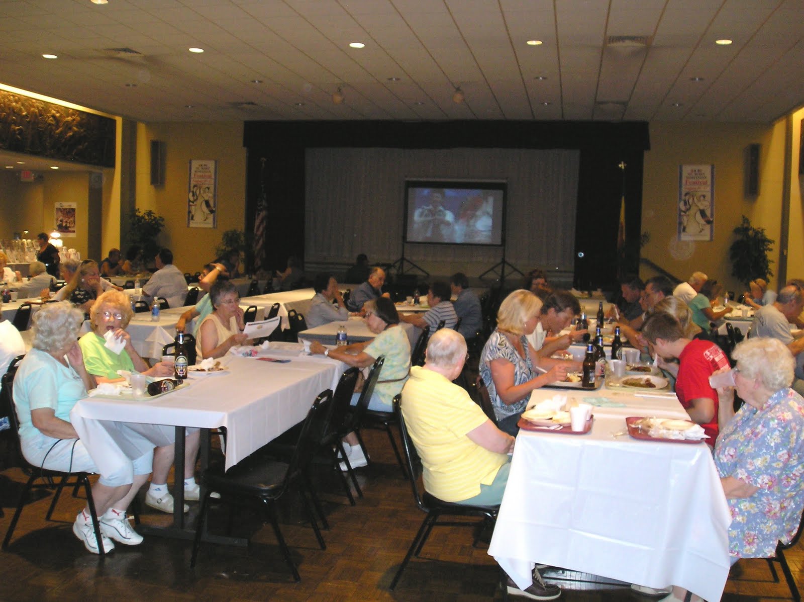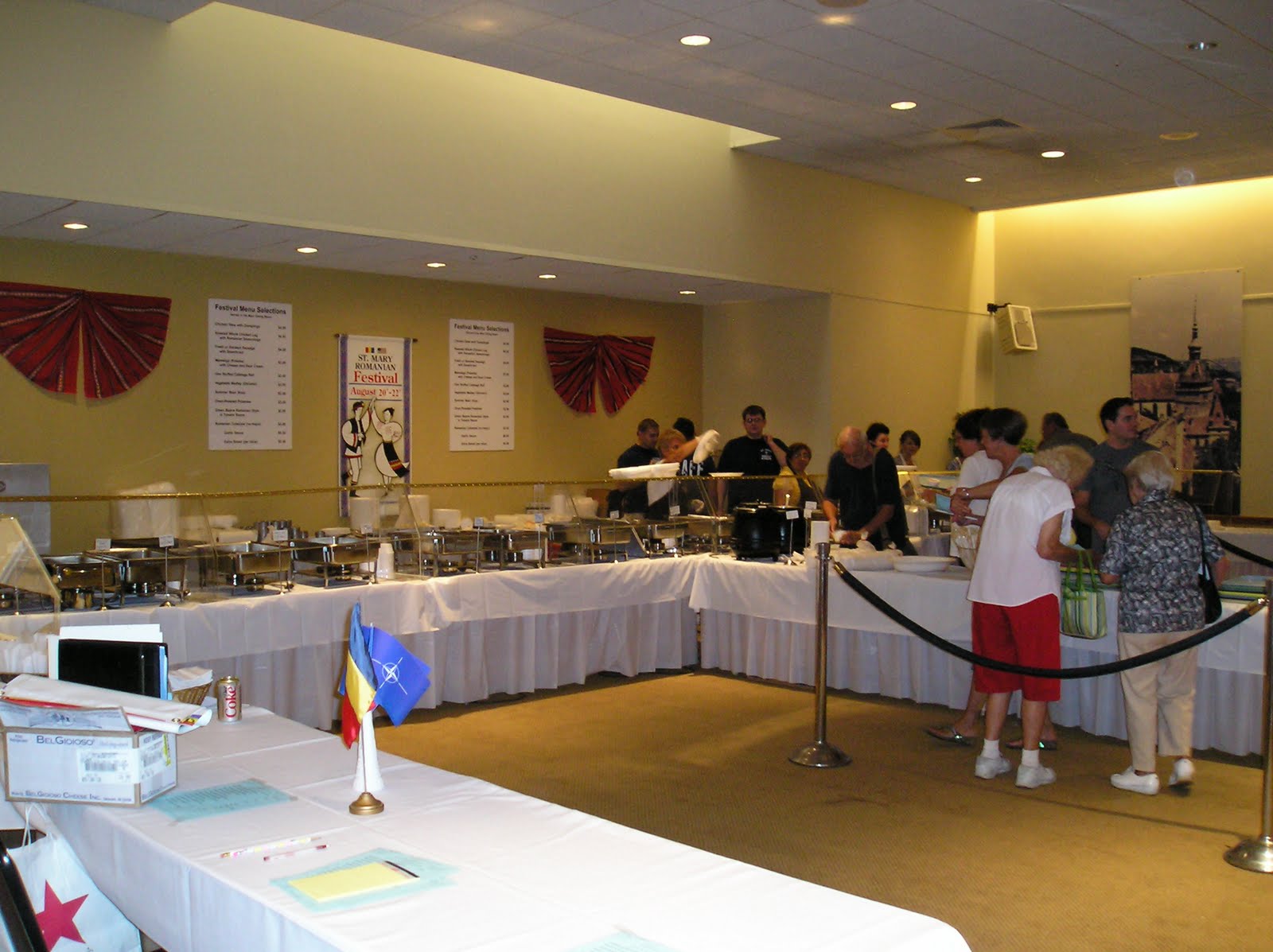 On our right, the tables were lined up with a stage just beyond it. On the stage was a projection screen with Romanian musical performances.