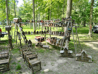 …hand-carved birdhouses and chairs…