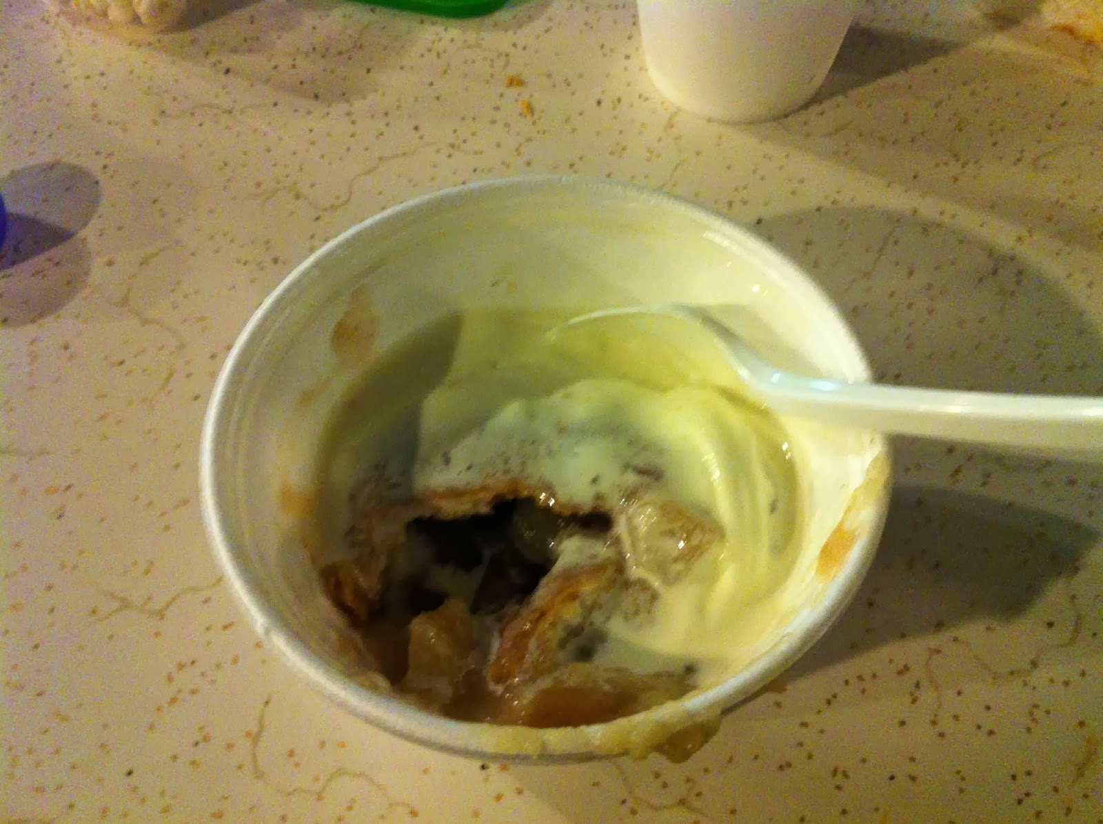 Both delicious dumpling and apple were spooned through melting ice cream…