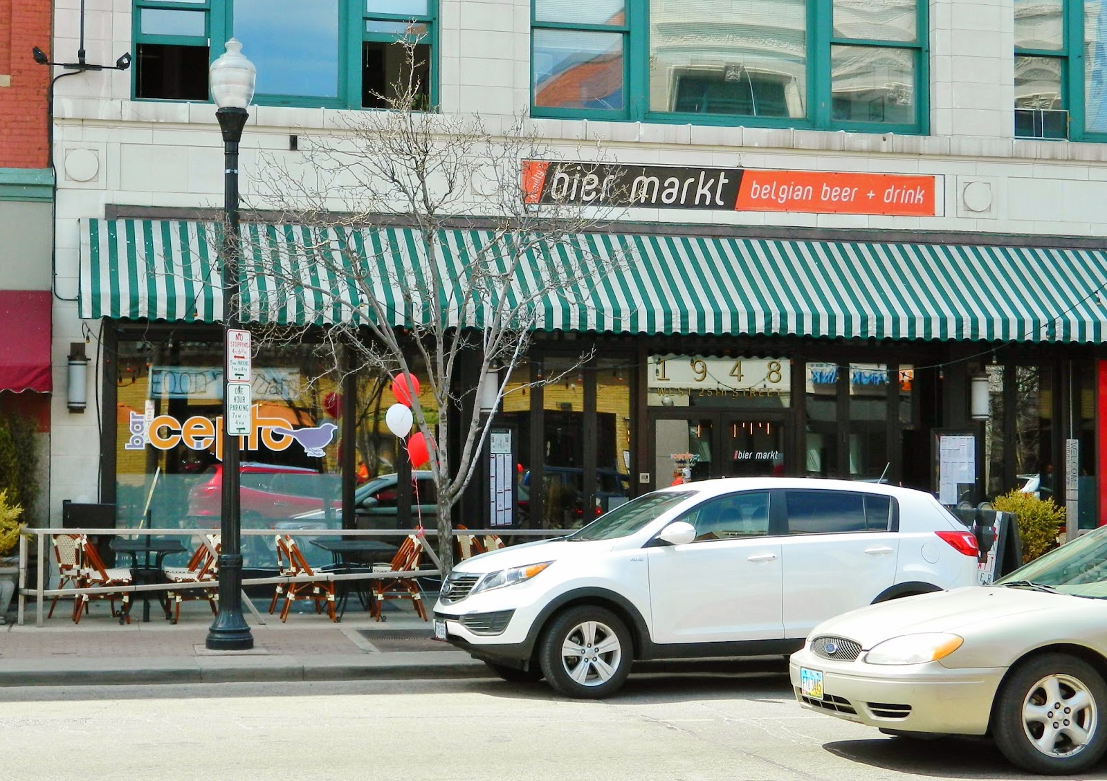 …each marked by red and white balloons (bier markt)…