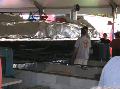 Set to break their 2005 world record (2,020 lbs), the festival chefs were having a problem with this pie, having pulled it out too soon. The pie was originally supposed to come out at 5, but I took this picture around 5:20 and it still had to cool afterward before serving.
