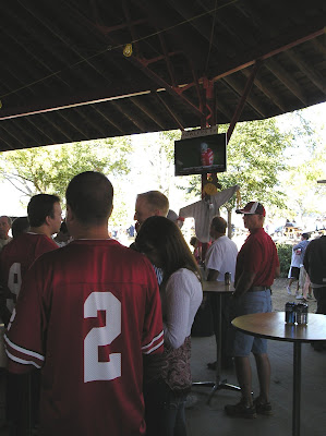 Near the game area and next to the pavilion, I noticed a crowd circling a nearby building…