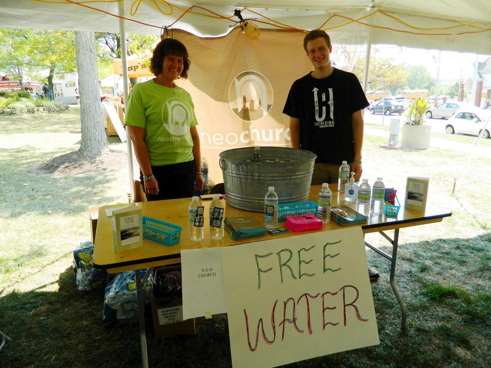 …and the NEO Church, which gave free bottles of water.