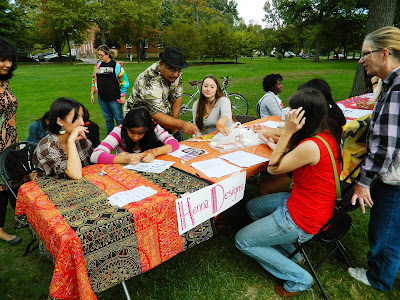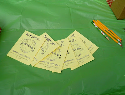 .…and then offering them a passport to get stamped at the various cultural tables occupied by Oberlin College International Student Organizations and community cultural organizations.