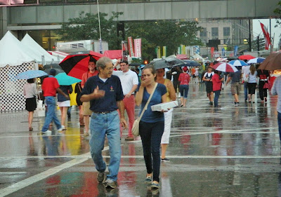 …so the large German-loving crowds turned into puddles, umbrellas, and wet festival goers…
