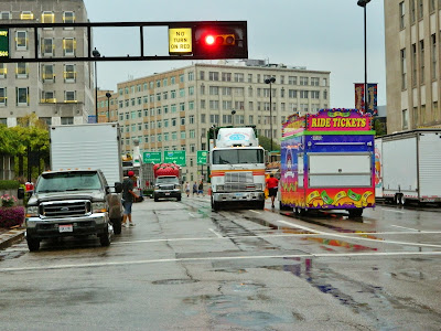 …and onto dry spots under the sidewalk awning.