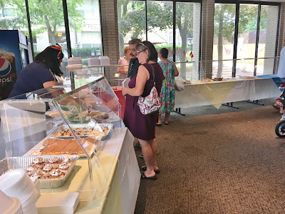…the main lobby was lined with tables…