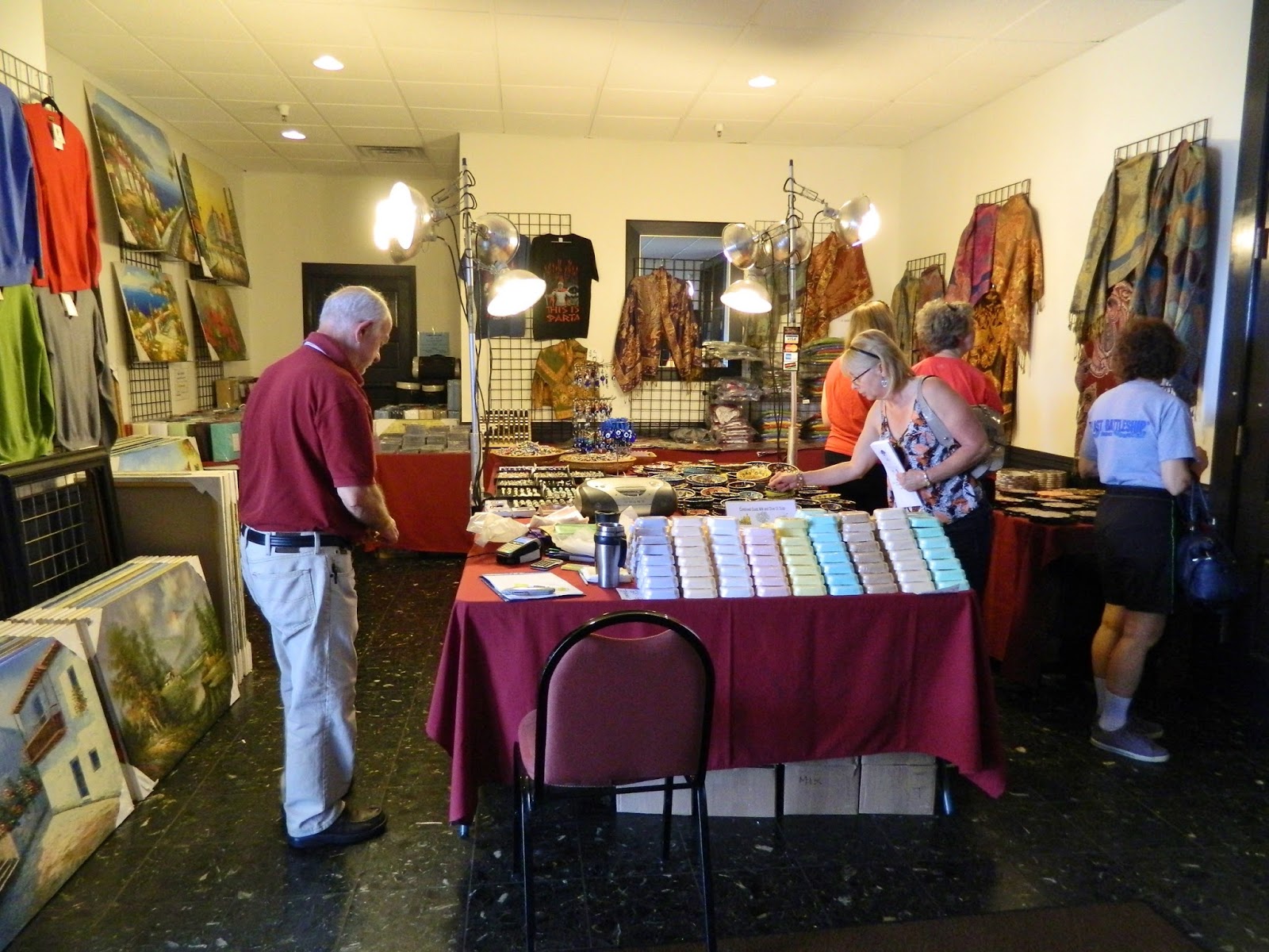 In the hall, festival goers shopped among the booths in small pockets…